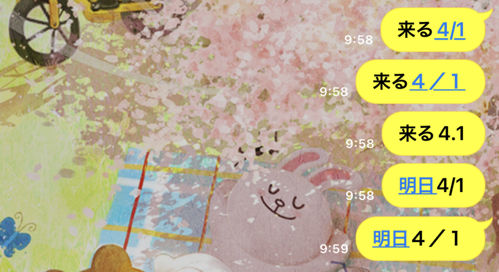 LINEのトーク内で、明日や13時が青文字(ハイパーリンク)に変わるシステム改修が行われました。