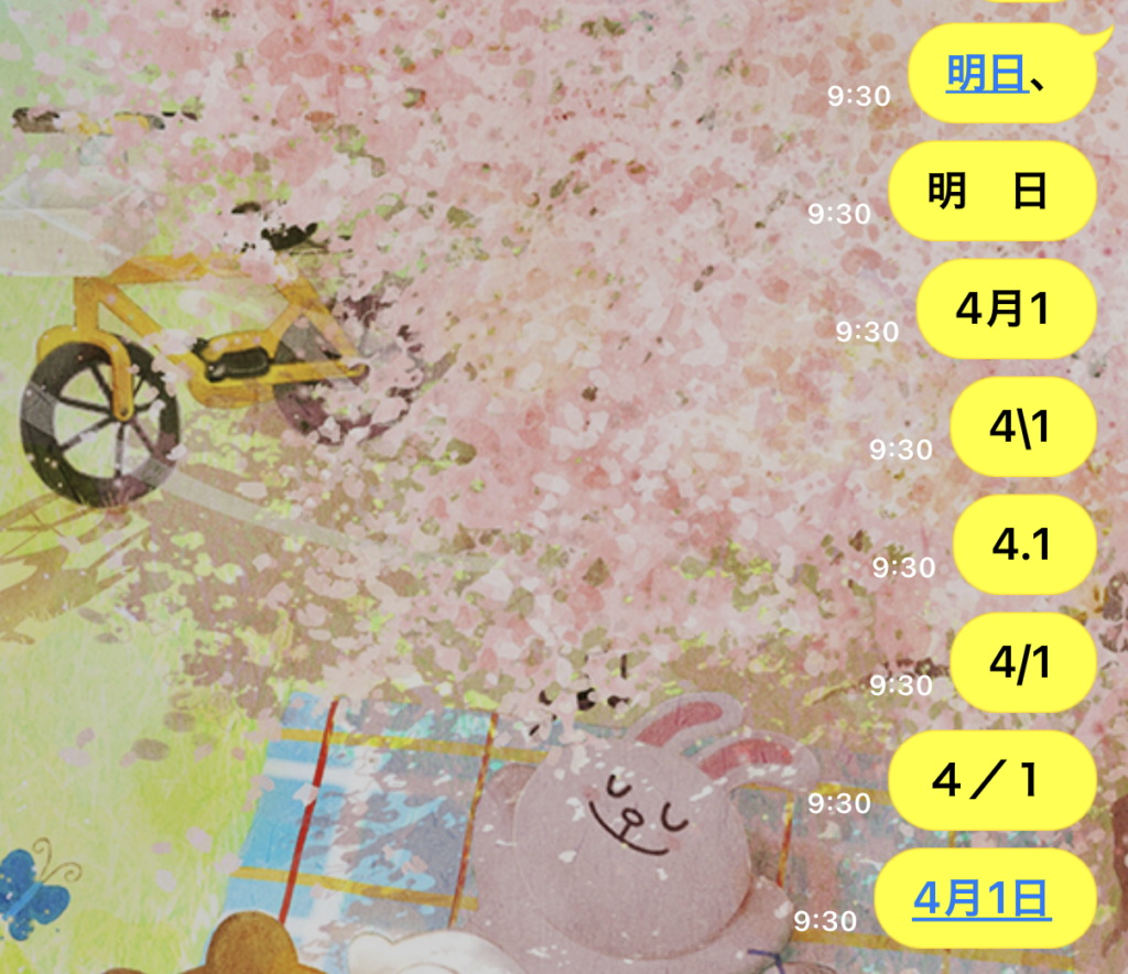 - 4月1日という漢字表記だと反応するため、スラッシュやドットを活用しましょう。